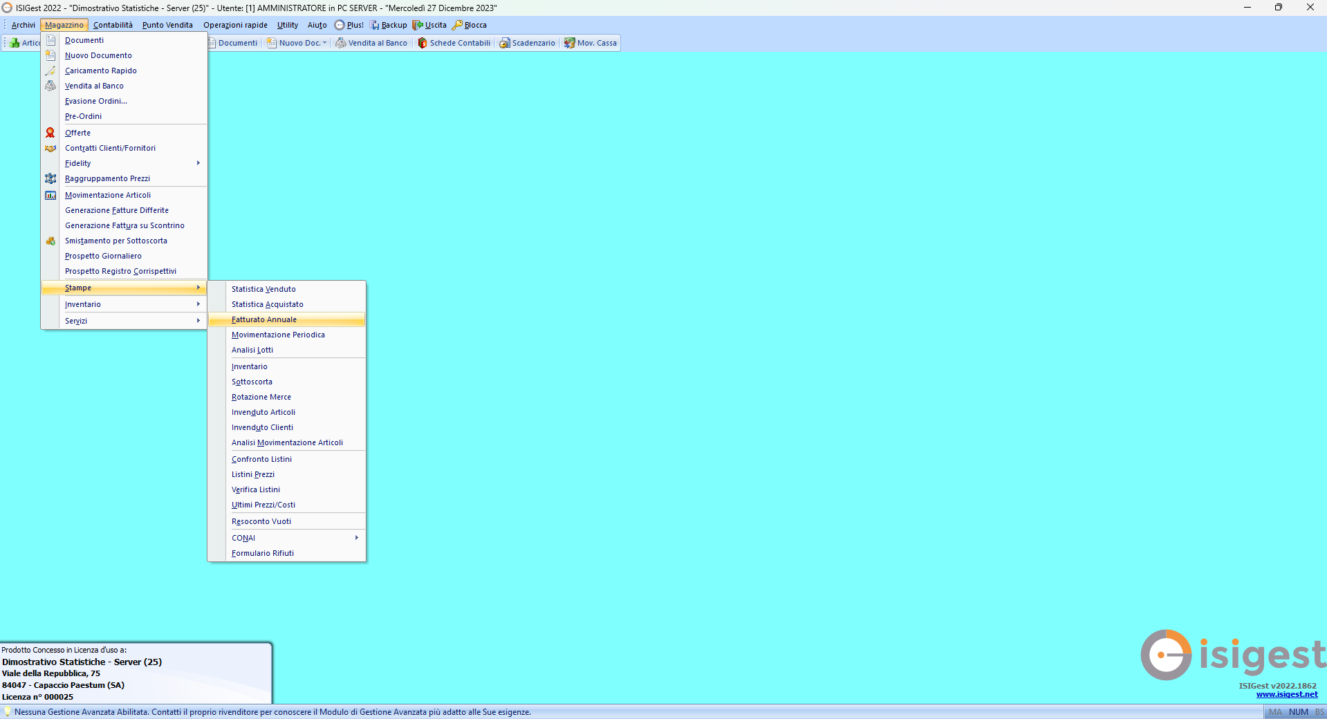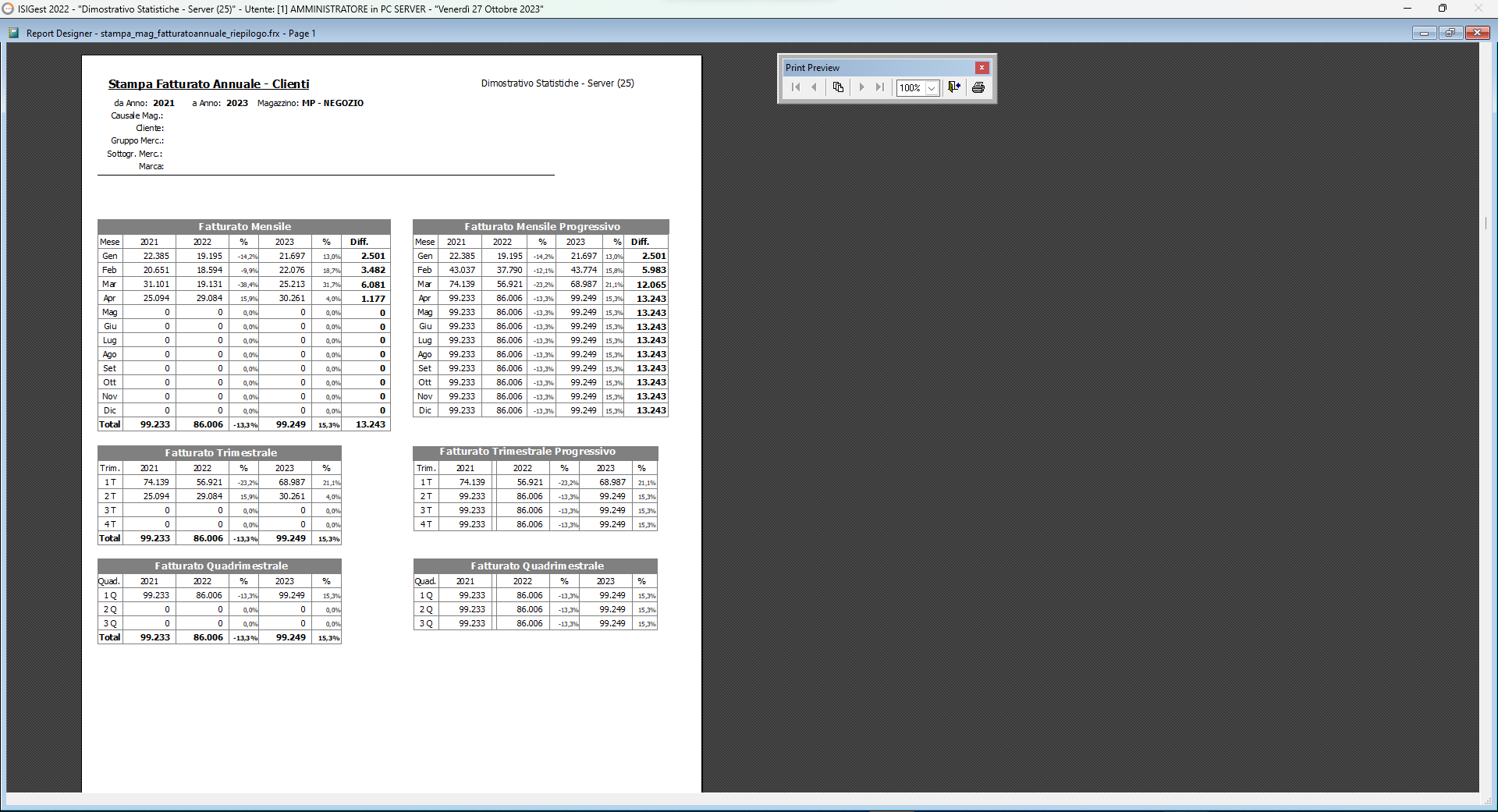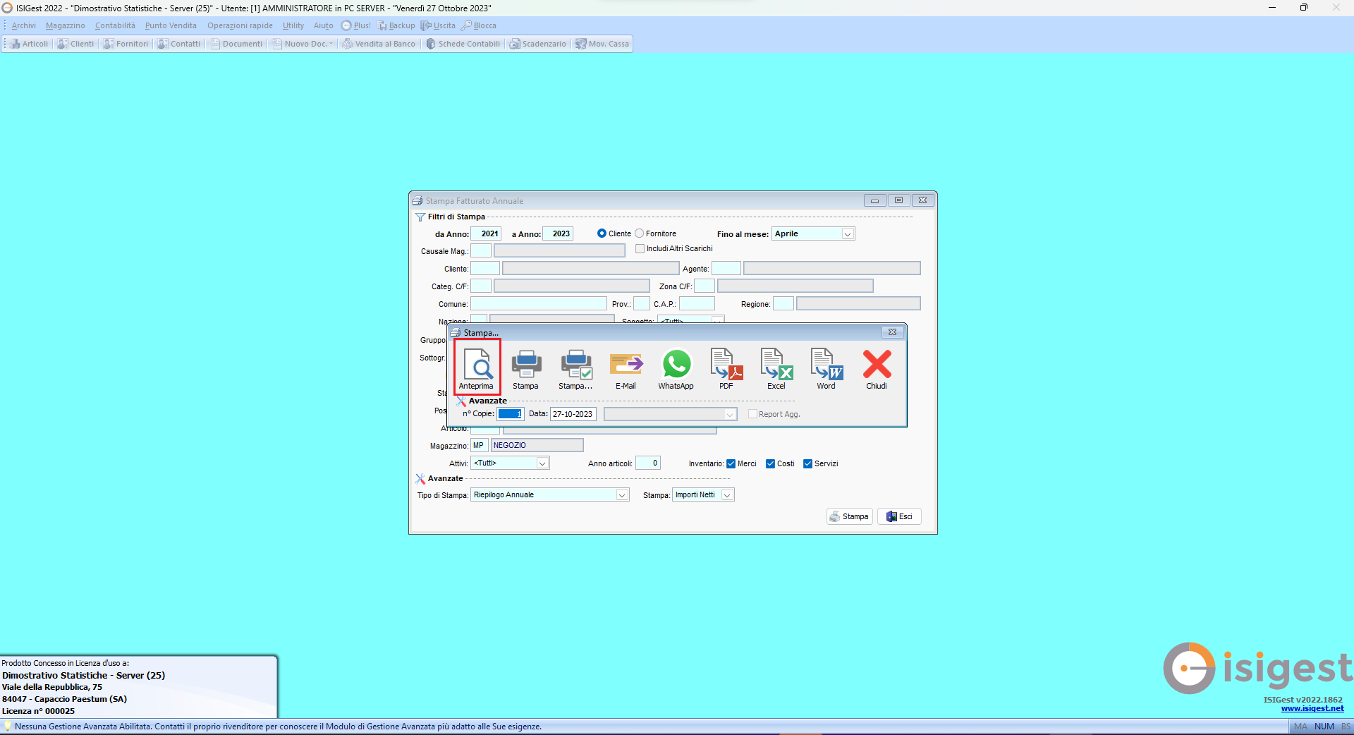 Selezionare Magazzino > Stampe > Fatturato Annuale